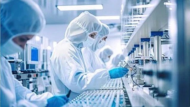 100000 درجة GMP والأشعة فوق البنفسجية ونظام تطهير الأوزون ومعدات فراغ الاستحلاب الأوتوماتيكية ومعدات تعبئة الهواء النظيف لتحقيقهاعملية تعقيم طبية.